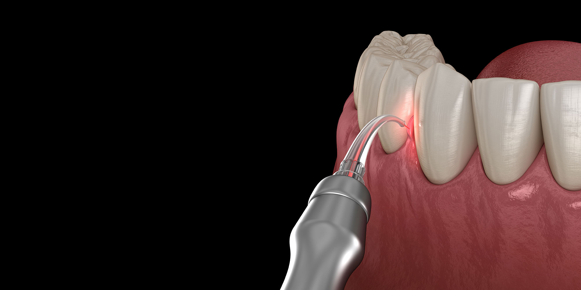 The laser fiber is gently guided into the peri-implant pocket, where it delivers precise laser energy to eliminate the harmful bacteria and diseased tissue driving the infection. The laser is calibrated to target only the compromised tissue, leaving the healthy gum and bone tissue surrounding the implant completely unaffected. There are no incisions, no tissue removal, and no sutures required.